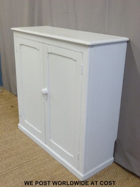 A two door painted pine cupboard (W106 x D40 x H107cm)