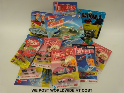 Fifteen Matchbox, ERTL and other Thunderbirds, Captain Scarlett and Batman diecast model vehicles including a Matchbox limited edition Thunderbirds Collector Set, all in original boxes