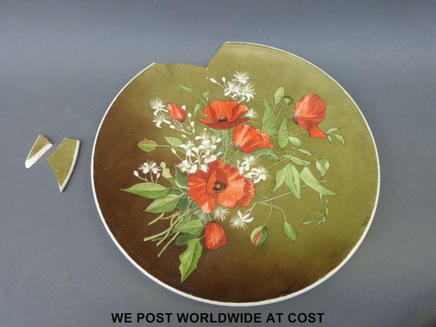 Three Staffordshire potteries hand painted chargers, signed verso DRW, FW, EWB (largest 42cm diameter)