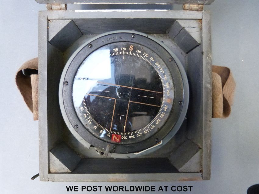 A type PII military compass in original wooden box, possibly ex Spitfire, Lancaster, Mosquito etc.