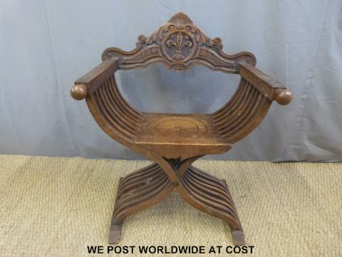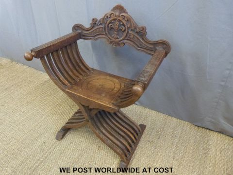 A folding carved chair
