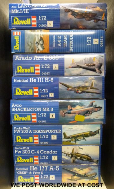Eight Revell 1:72 scale model aircraft kits, all in original boxes