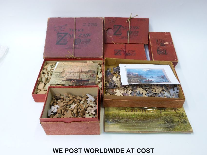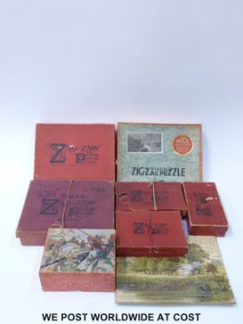 Seven Zag-Zaw and Zig-Zag jigsaw puzzles, all in original boxes