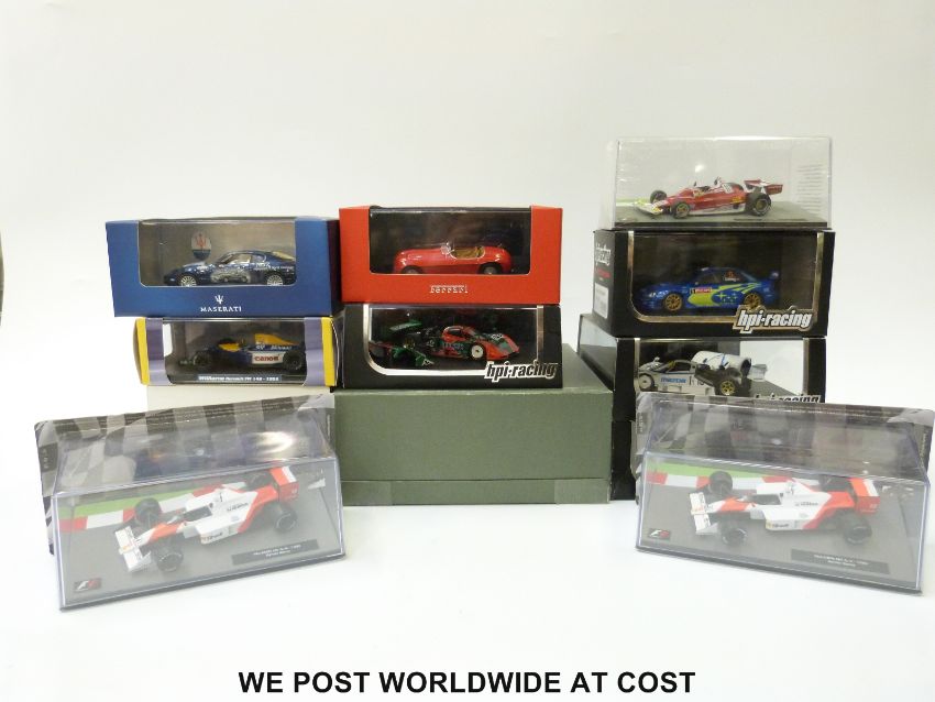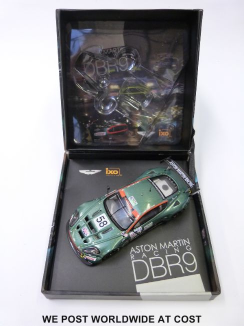 Twelve Aston Martin Racing, IXO Models, hpi-racing and other diecast model racing cars including a limited edition Aston Martin Heritage set 302/2000, Le Mans cars, DB9 etc, all in original boxes.
