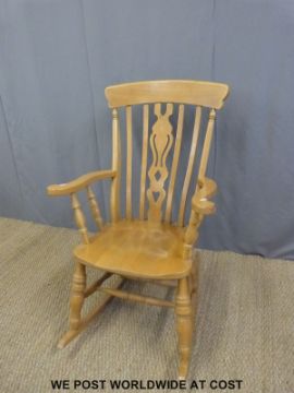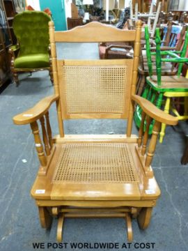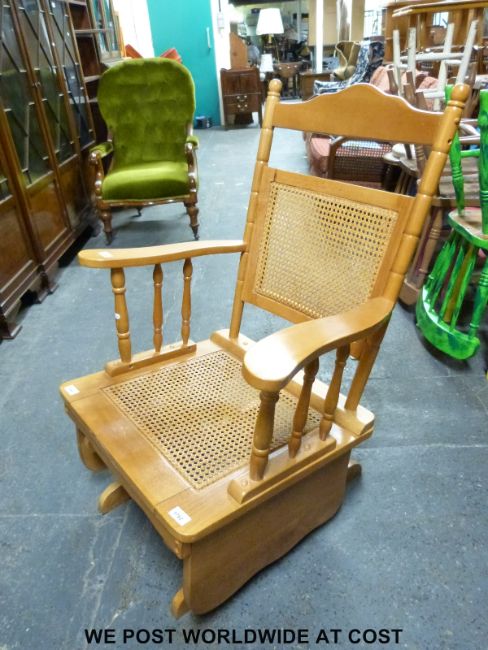 A beech bergere American style rocking chair