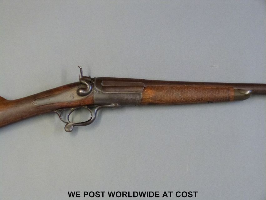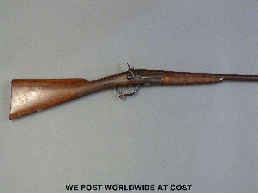 Edwinson Green Cheltenham & Gloucester 12 bore single barelled hammer action shotgun with named 32 inch Damascus barrels, rotary underlever, chequered grip and horn tipped forend, overall length 123cm, serial number 4952 PLEASE NOTE THAT A VALID RELEVANT FIREARMS/SHOTGUN CERTIFICATE IS REQUIRED TO HANDLE/PURCHASE THIS ITEM.