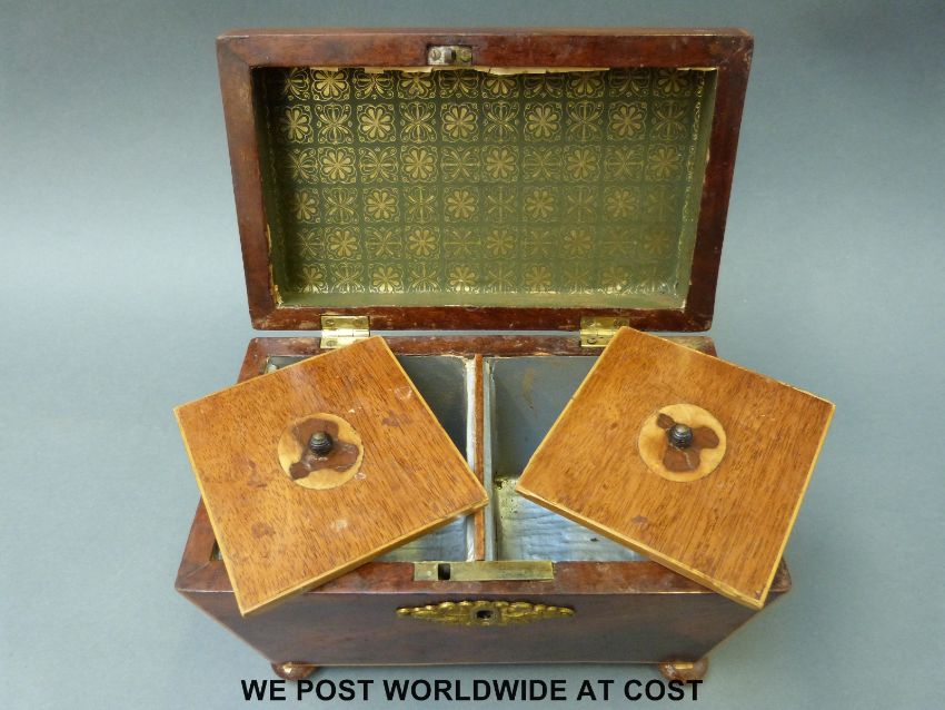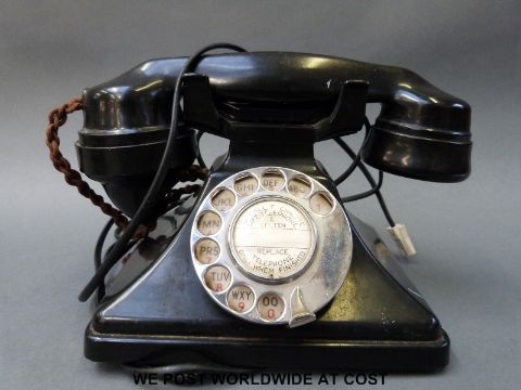 A vintage telephone - rewired for the modern home and an early 19th century tea caddy with lining raised on bun feet