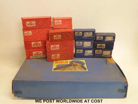 Fifteen Hornby Dublo 00 gauge wagons and coaches, all in original boxes together with a set box