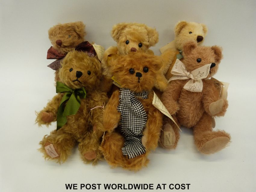 Six Deans Rag Book teddy bears, Grandpa Terry, Cousin William, George, Horace, Hardy and Hector, all limited edition