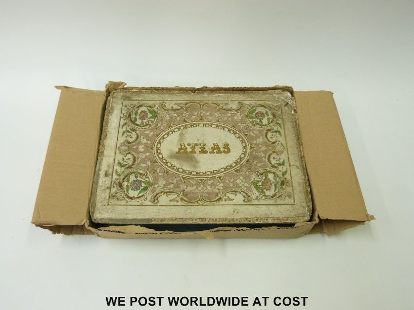 Seven Atlas jigsaw puzzles, Italy, Europe, France, South America, North America, Asia and The Globe, with original box lid and base
