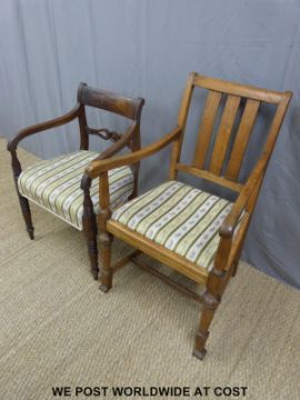 An oak carver chair in the Arts and Crafts style, together with a Regency chair