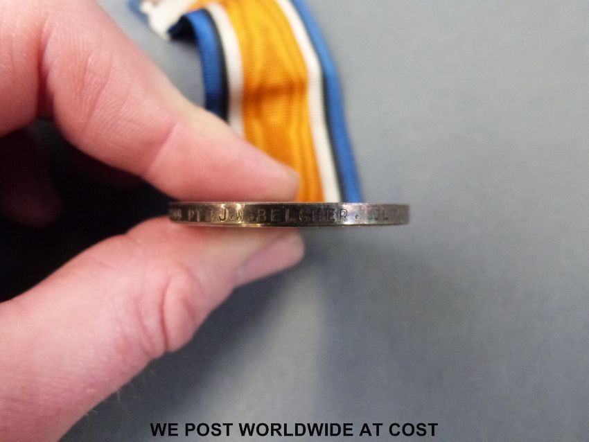 A pair of WWI medals awarded to 4499 PTE J W Belcher Gloucestershire Regiment, together with a 1914-15 Star awarded to 10519 PTE J Jones Wilts Regiment