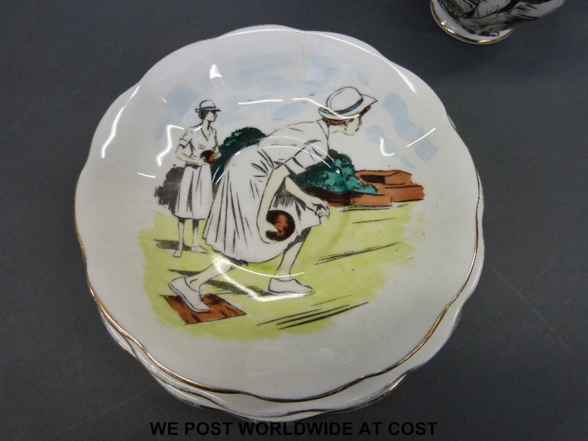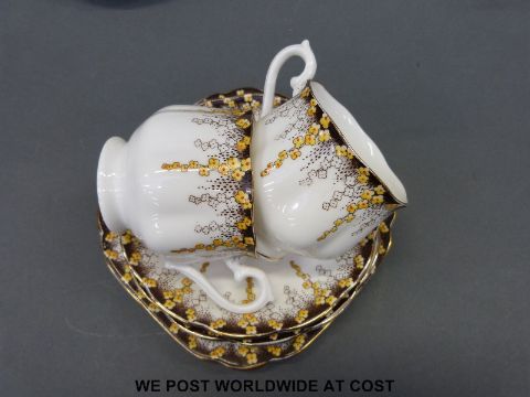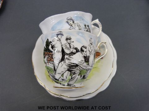 A collection of Royal Albert tea ware to include April Showers, Petit Point and Blossom Time patterns and two unusual trios decorated with bowls scenes