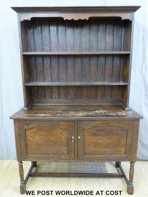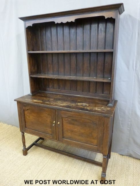 An oak dresser with plate rack above (W22 x D47 x H163cm)