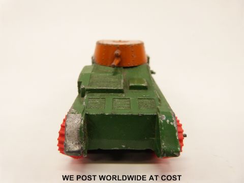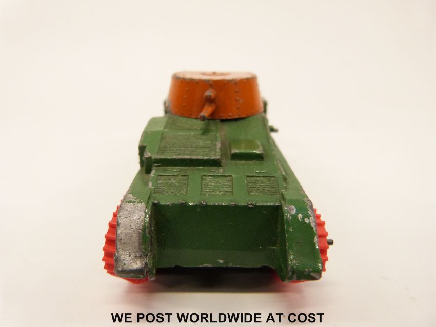 Dinky Toys Hornby Series diecast model Army Tank with green body, orange turret and red rubber tracks, 22F