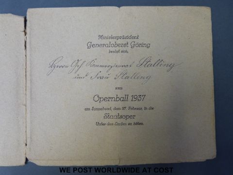 A 1937 ball invitation from 'Generaloberst Goring' of Nazi German military interest