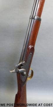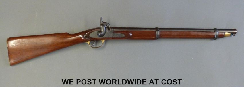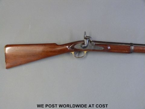 Single barrelled percussion hammer action smooth bore gun with proof marks to the 21 inch barrel and brass trigger guard and butt plate, NVSN, overall length 93cm PLEASE NOTE THAT A VALID RELEVANT FIREARMS/SHOTGUN CERTIFICATE IS REQUIRED TO HANDLE/PURCHASE THIS ITEM.