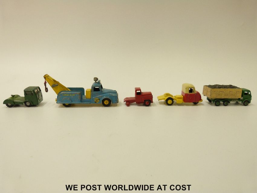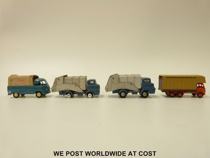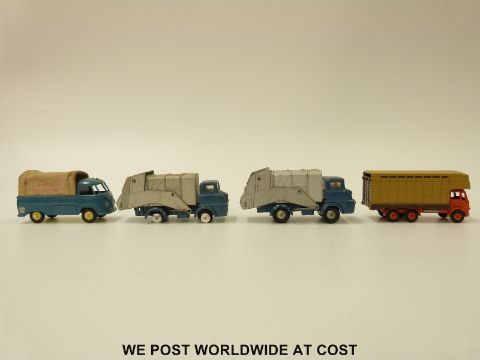 Nine Budgie Toys diecast model vehicles including rubbish wagons and towing truck.