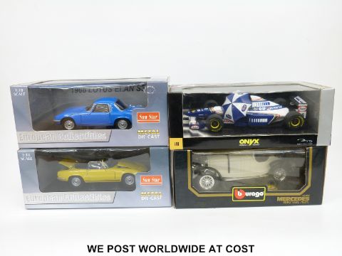 Eight Franklin Mint, Sun Star, Burago, Onyx and Superior Models large scale diecast model cars including 1937 Alfa Romeo 2900B, Mercedes, Formula 1, Lotus etc, all in original boxes