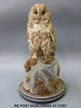 A Victorian taxidermy study of a tawny owl, 38cm tall