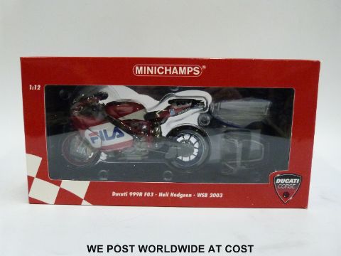 Minichamps 1:12 scale diecast model Ducati 999R F03 WSB superbike 2003, in original box.