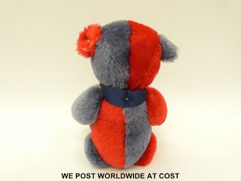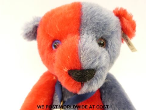 Steiff Original 2000/01 Steiff Club edition Harlekin 35 1925 replica Teddy Bear with red and blue mohair, yellow pads, jointed limbs and pendant, limited edition 5740, in original box with certificate