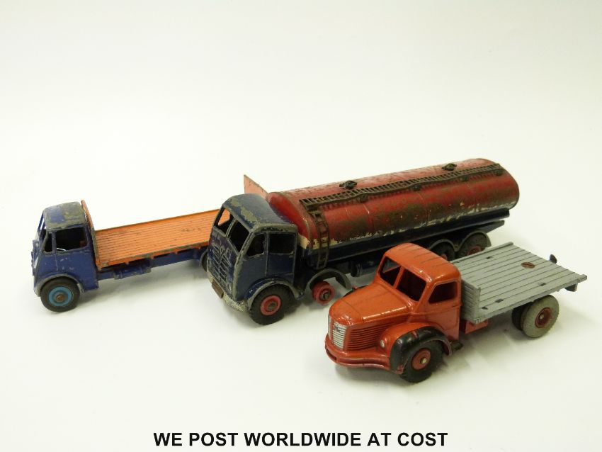 Seven Dinky Toys and Dinky Supertoys diecast model commercial vehicles comprising Foden tanker, two Foden lorries, Guy truck, Bedford tipper, Berliet lorry and Commer Dinky