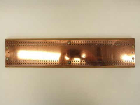 A large copper topped cribbage board (length 52cm)