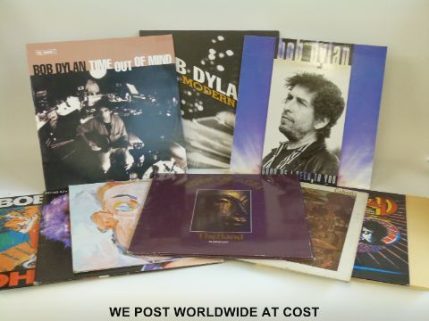 Bob Dylan/Band/Travelling Wilburys, Box Set, 15x LPs and one 12" single. Includes: "Biograph" (5xLP box set, complete); "Modern Times" (2xLP 180gm); "Time Out Of Mind" (2xLP); "Freewheelin'" (early stereo pressing); "Good As I Been To You"; "Dylan & The Dead"; Band "Last Waltz" (2xLP, complete); and The Traveling Wilburys "Vol 1" & "Vol 3". The condition of the vinyl appears to be mostly excellent.