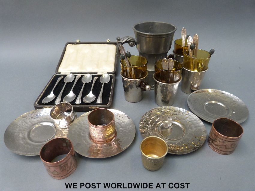 A quantity of silver plated items including cased spoons, together with a pewter tankard etc