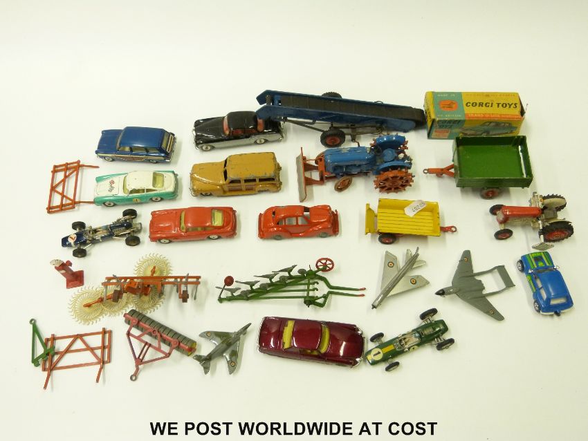 Twenty-four Corgi, Dinky and Britains diecast model vehicles including farm vehicles, aeroplanes, Formula 1 cars, etc. one in original box