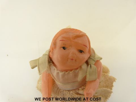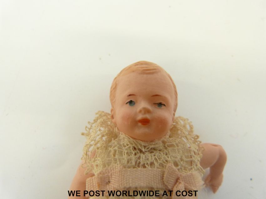A collection of miniature dolls including bisque examples with impressed marks, very early plastic examples etc.