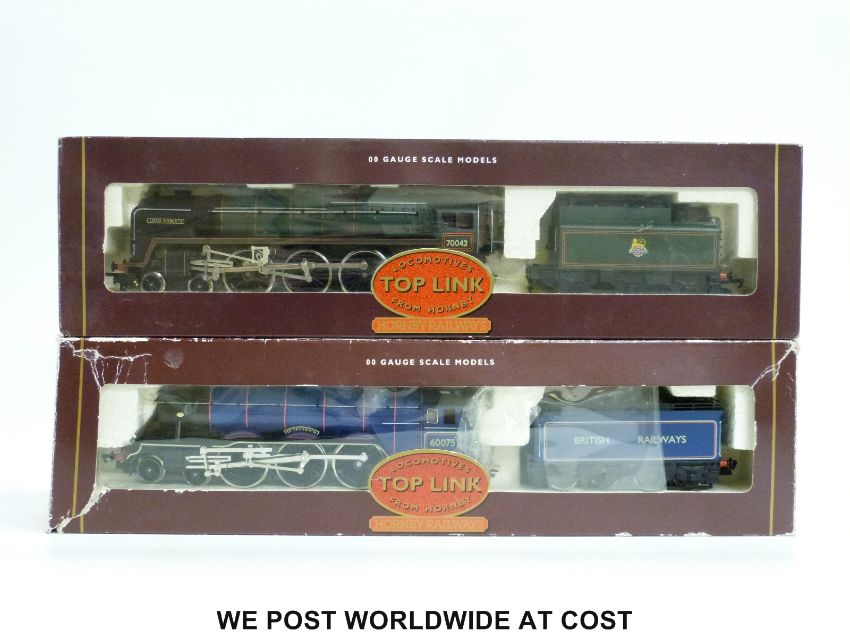 Two Hornby Top Link 00 gauge BR locomotives and tenders, limited edition 4-6-2 Class A3 'St Frusquin' 60075 R2036 and 4-6-2 Britannia Class 'Lord Roberts' 70042 R2010, both in original boxes