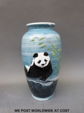 A quantity of panda themed ceramics and glass including Royal Crown Derby, Lomonosov, Country Artists, hand decorated vase