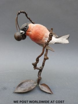 A Royal Worcester study of a bullfinch on a bronze cherry branch