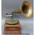 A vintage gramophone with brass horn, with label for The Gramophone and Typewriter, 21 City Road, London; approximately early 1900's