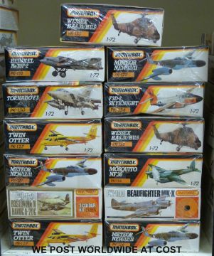 Thirteen Matchbox 1:72 scale model aircraft kits, all in original boxes, all unopened and sealed.