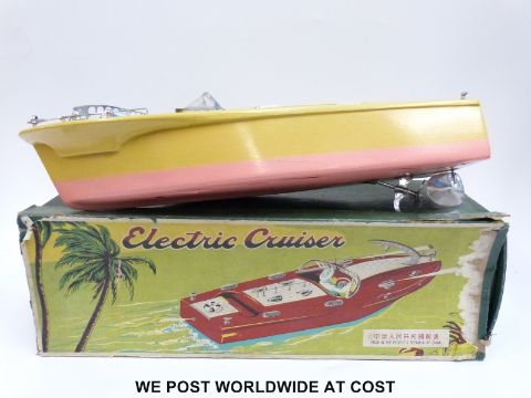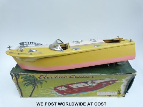 Chinese wooden model electric cruiser boat, in original box