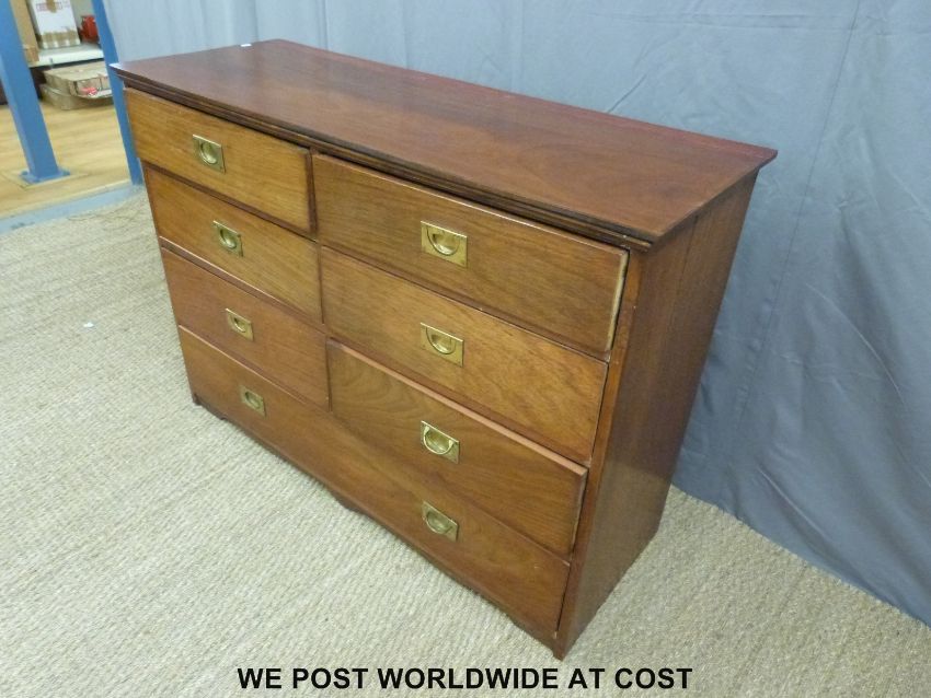 A 19th century mahogany chest of six over one long drawer with campaign style handles (W126 x D46 x H90cm)