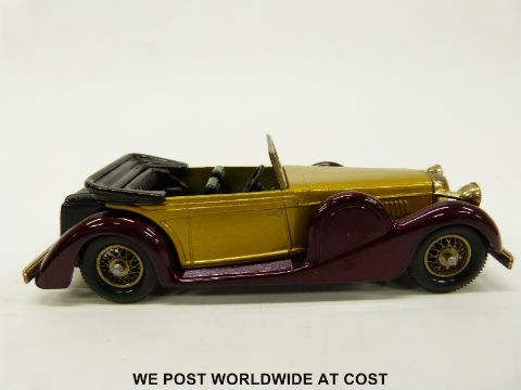 Matchbox Models of Yesteryear Y-11 1938 Lagonda Drophead Coupe with gold and purple body and black interior, in original box