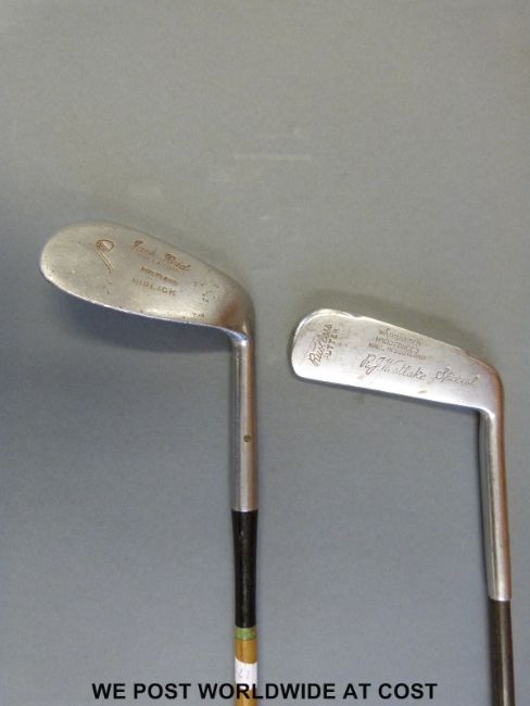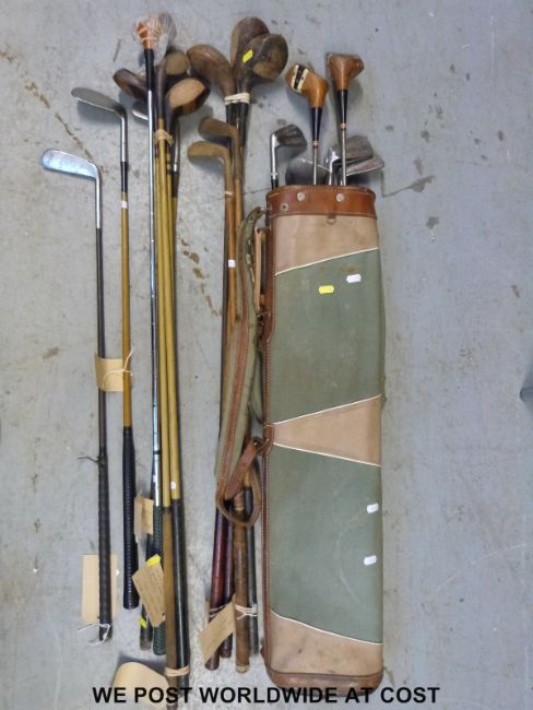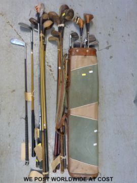 Vintage Marc Charles golf clubs in bag, three vintage woods, hickory shafted irons, three Smithson special woods, Ben Alder iron, a rare Peter Broadbent driver, R J Westlake putter, Jack Reid Niblick Dullatur golf club etc