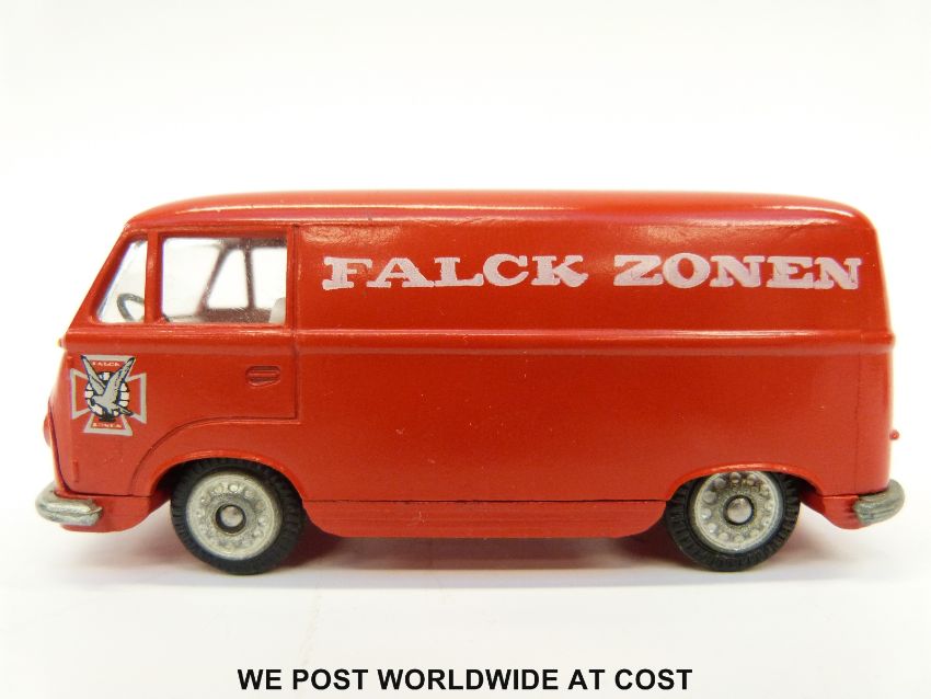 Tekno diecast model Tantus Transit with red body white interior and 'Falck Zonen' decals, 415, in original box.