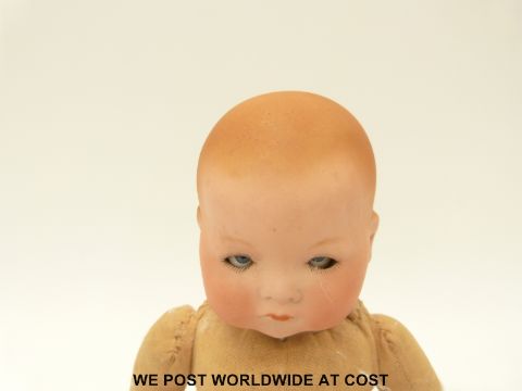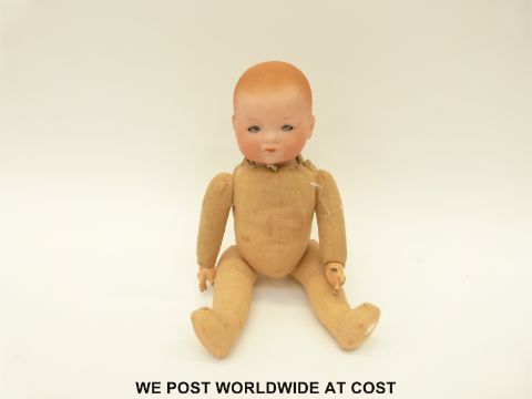Armand Marseille bisque headed doll with closed mouth, weighted blue eyes, soft body and composite hands, marked to the back of the neck AM Germany 341/2, 29cm tall
