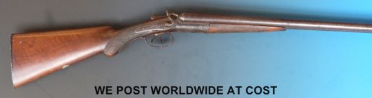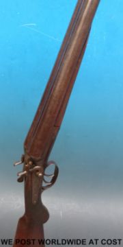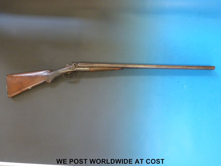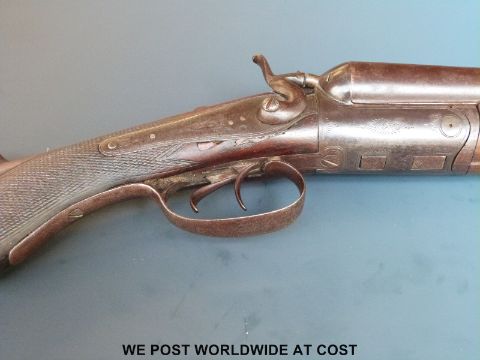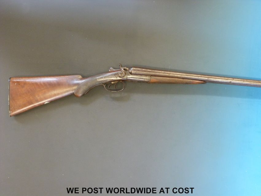 Unnamed 12 bore double barrelled side by side hammer action shotgun with engraving to the side locks, chequered semi-pistol grip and 29.5 inch Damascus barrels, overall length 117cm, NVSN. PLEASE NOTE THAT A VALID RELEVANT FIREARMS/SHOTGUN CERTIFICATE IS REQUIRED TO HANDLE/PURCHASE THIS ITEM.