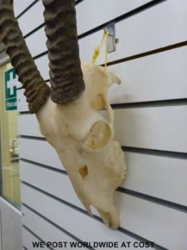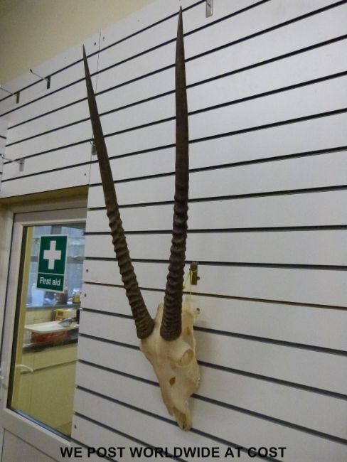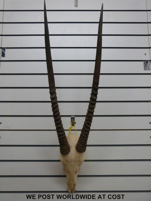 A pair of mounted antelope horns, possibly Eland, total height 110cm