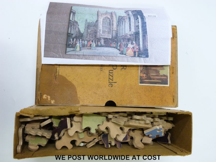 Four Chad Valley Great Western Railway (GWR) jigsaw puzzles, Bath Mountains of Killarney, St David's Cathedral and Piccadilly Circus, both in original boxes