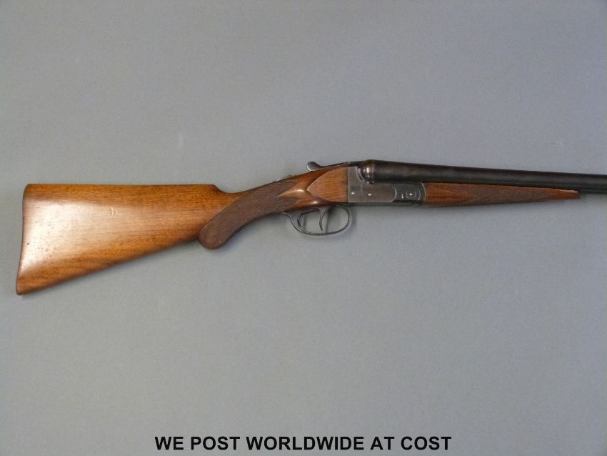 BSA 12 bore side by side shotgun with chequered semi-pistol grip and forend and 28 inch barrels, overall length 113cm, serial number 30378. PLEASE NOTE THAT A VALID RELEVANT FIREARMS/SHOTGUN CERTIFICATE IS REQUIRED TO HANDLE/PURCHASE THIS ITEM.