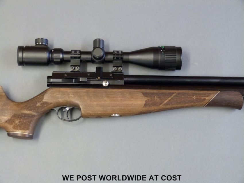Air Arms S510 Xtra .22 air rifle with carved semi-pistol grip and Tasco 2.5x1-10x.42 waterproof scope, overall length 110cm, serial number 102387. PLEASE NOTE THAT A VALID RELEVANT FIREARMS/SHOTGUN CERTIFICATE IS REQUIRED TO HANDLE/PURCHASE THIS ITEM.