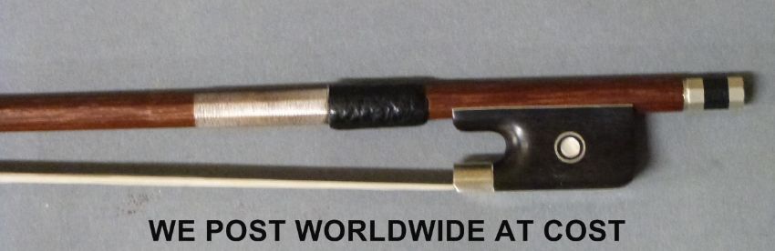 A viola bow with mother of pearl inlay (probably unused).