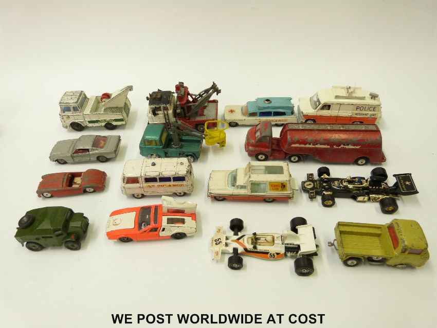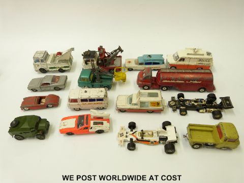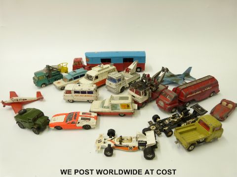 Eighteen Corgi and Dinky diecast model vehicles including aeroplanes, military vehicles, Chipperfields Circus etc.